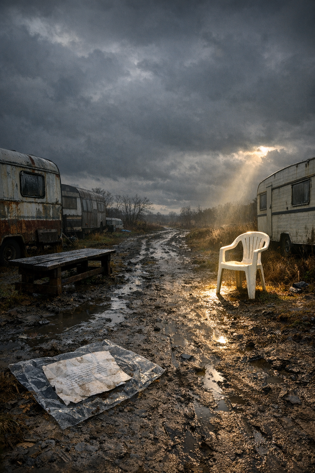 כבר אין לה כוח לעמוד. היא מתיישבת ברחבה על כיסא פלסטיק לח, דוממת, קפואה. והדמעות מתגלגלות כמו גשם רך, כמעט לא מורגש, היא אפילו לא שמה לב. לחשושים מאחוריה ומלפניה לא מעניינים אותה. הילדות על המעילים והצעיפים שלהן מתערפלות לגוש אחד.