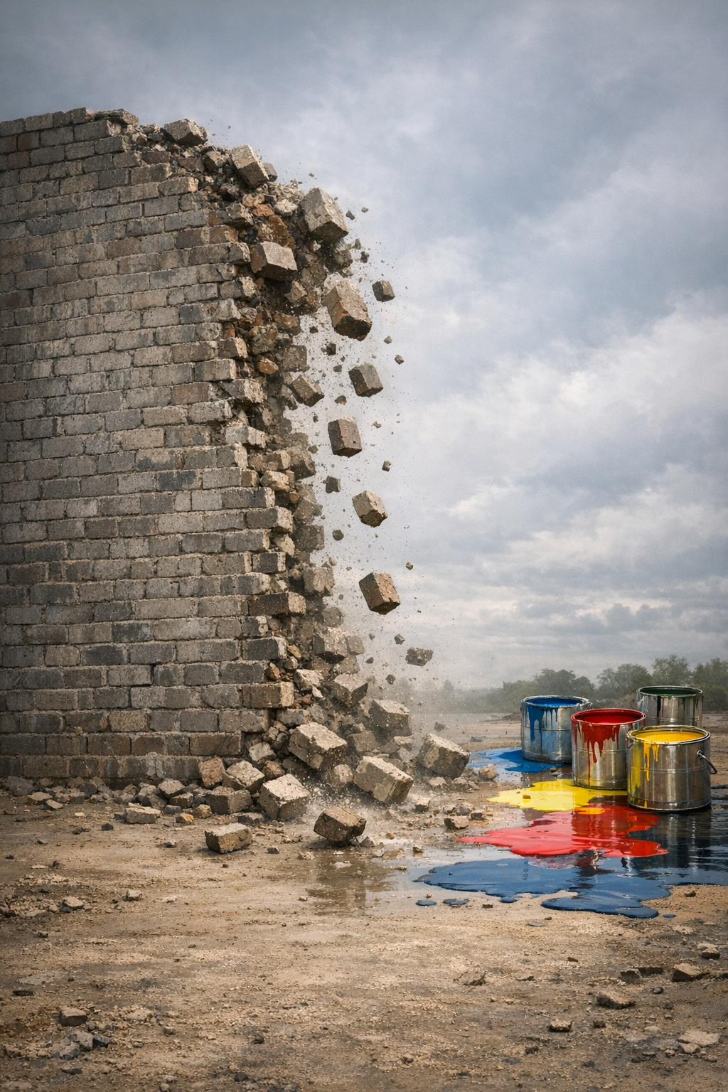 "אתה רואה את החביות שם בפינה? יש בהן חומרים שצריך לערבב", הסביר אוטו בסבלנות. "זה יהיה הצבע לקיר שאנחנו בונים. תתחיל להכין את זה מהר, כי מטי ואני גומרים לבנות תיכף".