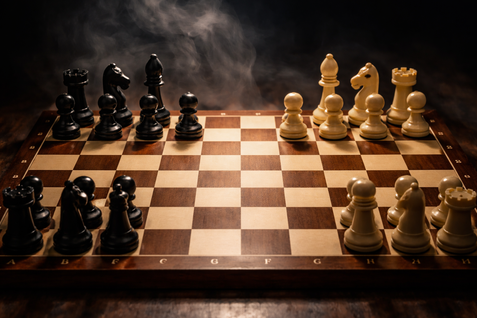 שני הצדדים רכונים במתח מעל לוח המשחק.