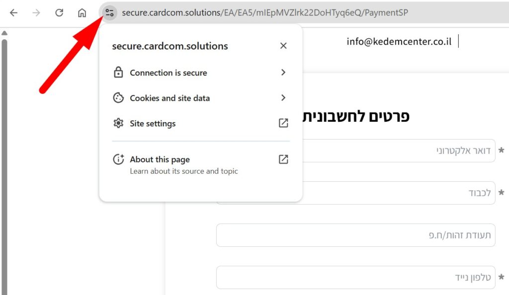 שימו לב שבאתרים מאובטחים צריך להיות גם סימן של מנעול כשלוחצים בשורת הדפדפן : connection is secure