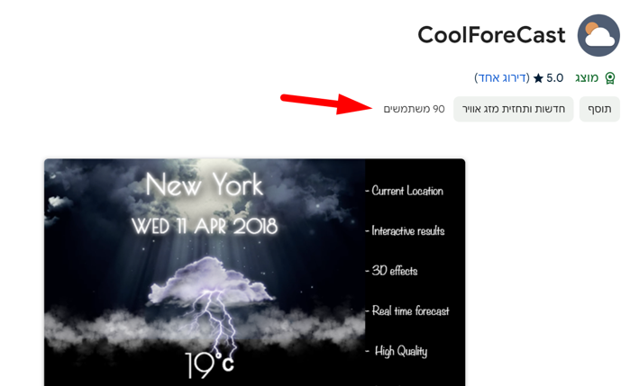 לדוגמא התוסף כאן למטה (מזג האויר) , לא נראה טוב. מעט מאוד משתמשים, ללא וי כחול.