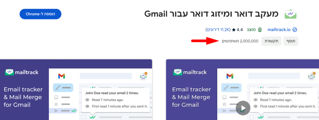 אם את מתקינה תוספים לדפדפן שלך, שימי לב שכמות ההתקנות היא גדולה ושהתוסף מאושר: