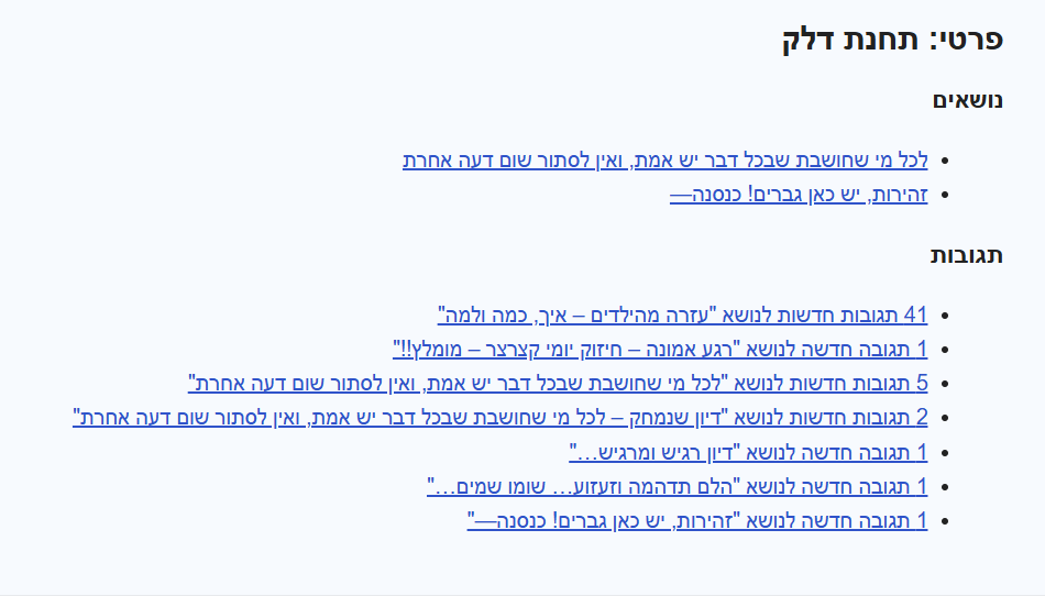 2. אפשרות לתפוס לינק של תגובה, בשביל לשייך במקומות אחרים (רצוי גם כלינק מסודר, לא כל הURL גלוי לעין)