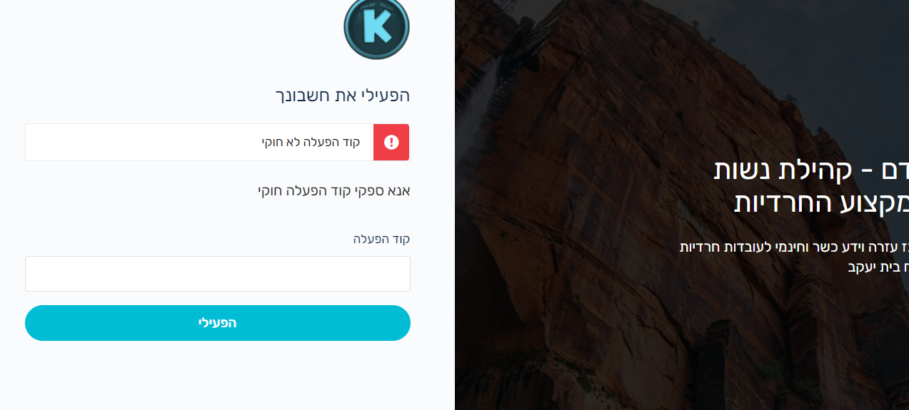 מנהלת קהילה שלום שושי, בתוך המייל שמקבלים יש קוד הפעלה פשוט צריך להעתיק אותו מהמייל לתיבת הטקסט שבצילום שלך.