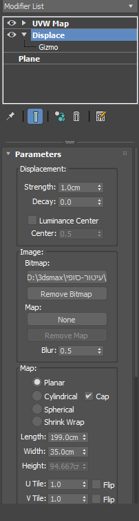 2. מוסיפים על הplane מודיפיי שנקרא 'displace'
