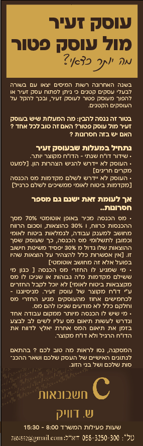 הצעת מחיר לפתיחת תיק עוסק זעיר
