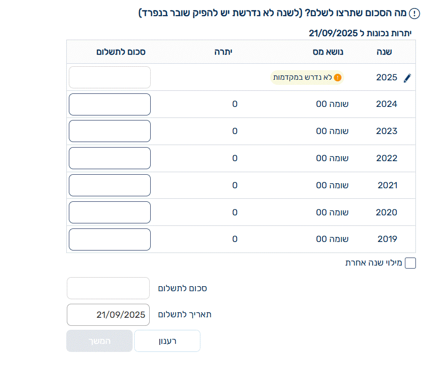 לקוח קיבל דרישה לתשלום עודפות בגין שנים 2020+2021+2023.