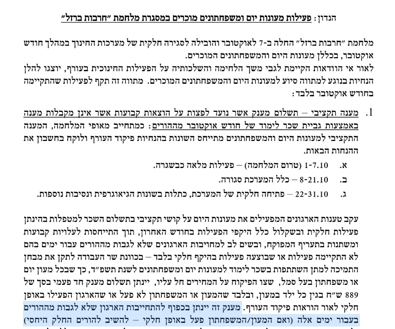 אחד מהתנאים שהמטלת אכן תקבל את המענק זה שהיא לא גבתה תשלום מההורים על הימים שלא עבדה.