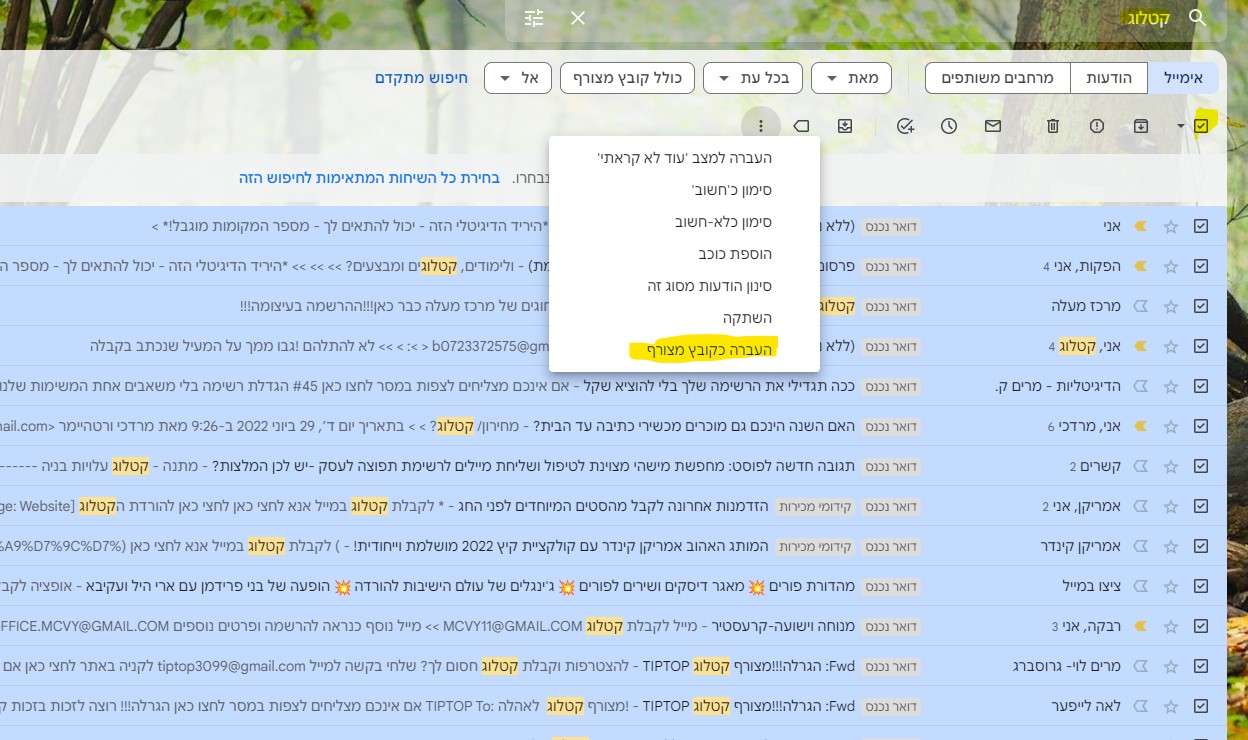 איסוף כתובות מייל מהודעות בגימייל