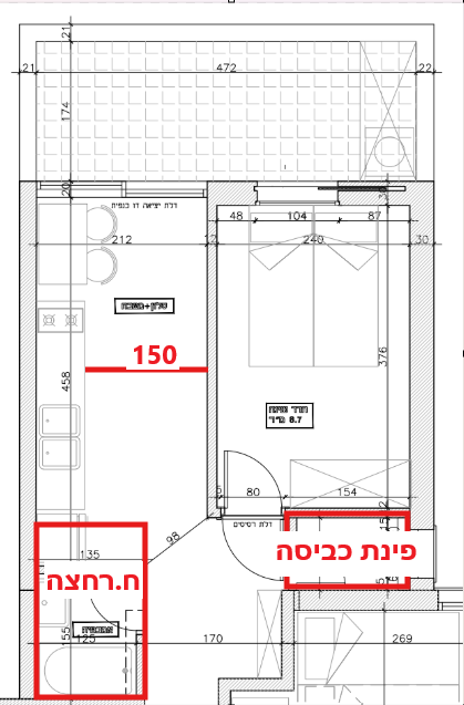 ואז להעביר את המטבח בצמוד לחדר רחצה (ראה שרטוט)