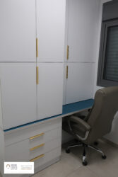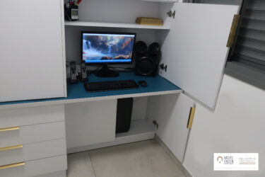 חברה חדשה באחד הפרויקטים שקבלתי במסגרת שינוי דיירים, תוכנן חדר עבודה לאם המשפחה. המסר שקיבלתי היה: אנחנו חייבים את המחשב לצורכי פרנסה, אבל, הוא חייב להיות בארון סגור, כדי שנוכל לעמוד בתקנון התלמוד תורה. זהו מחשב נייח ולא נייד. מדפסת לייזר מכובדת, סורק ורמקולים חיצוניים.