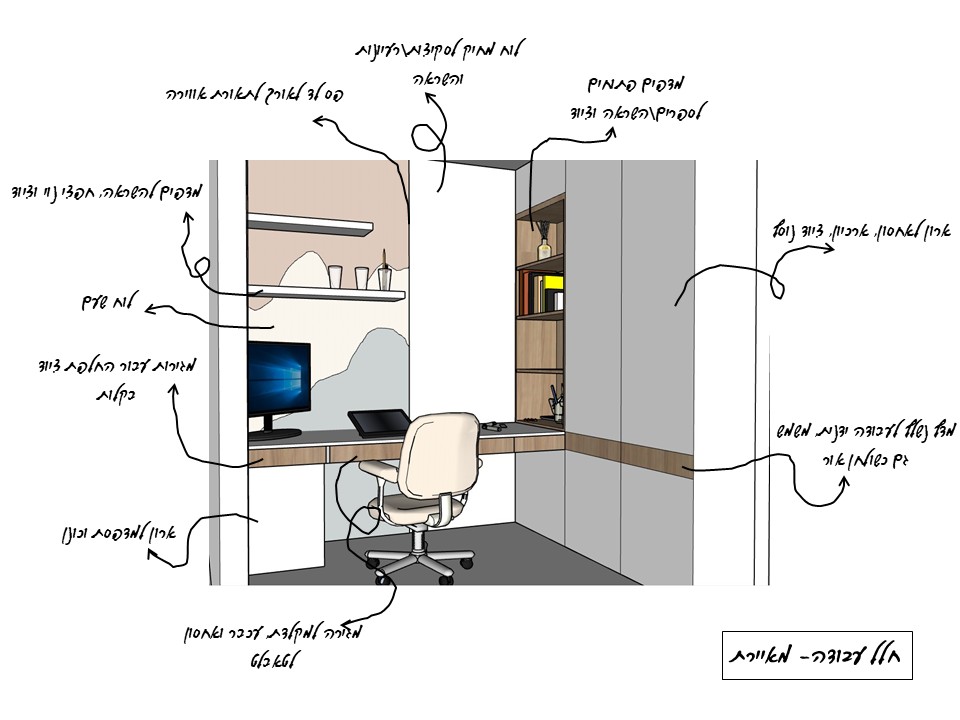 ולניצול לארונית ספרים ופינת כתיבה,לפי התוכנית..