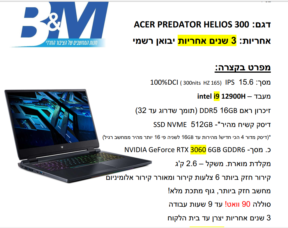 - חברה מומלצת (DELL, HP, ASUS וכד')
