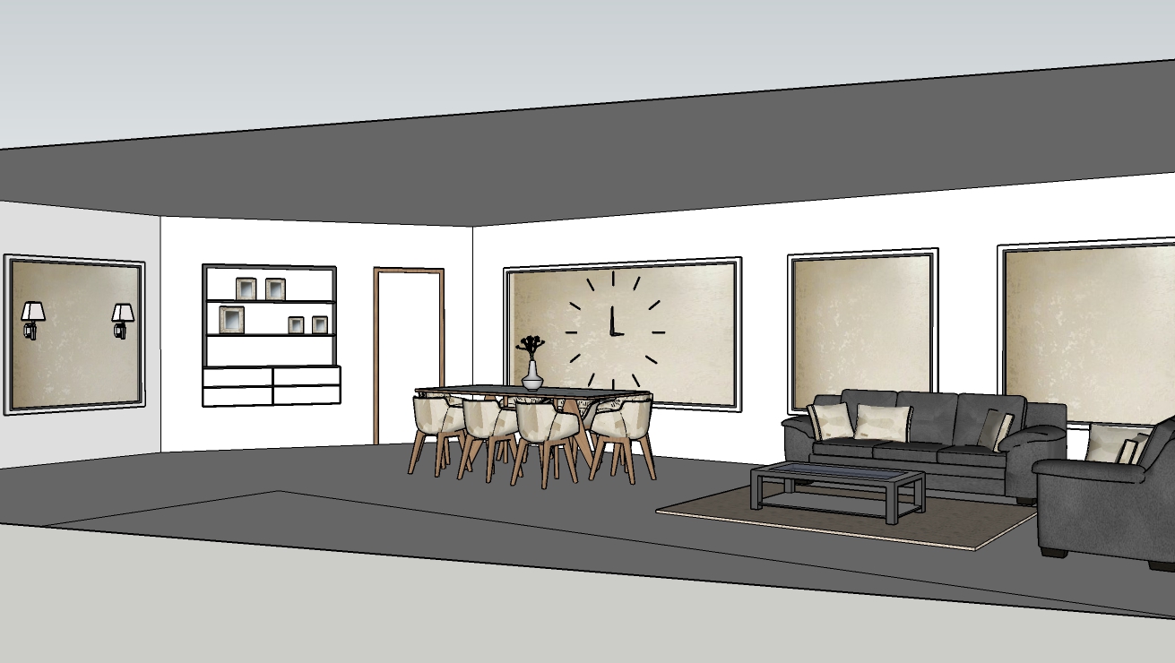 מיכל הייתי ממליצה לך לחלק את הקיר לפי הפונקציות פונקצית פינת אוכל ופונקצית ספות