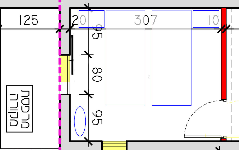 הקיר הימני (האדום) מאד גבוה (כ-4 מטר), הקיר שגובל עם המרפסת בגובה סטנדרטי (2.5 מטר).