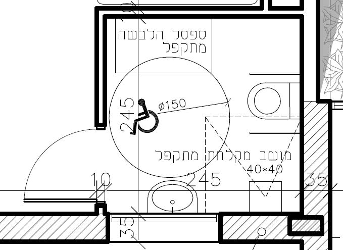 מבחינת התקן של שירותים מונגש – זה חדר בגודל בסדר, רוחב דלת מצוין- התקן דלת לבחוץ