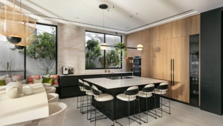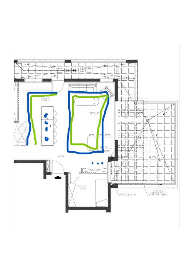 בחלל סלון מטבח המצורף יש לתכננן תאורה שקועה בגבס כולל יציאות מיזוג מהתקרה