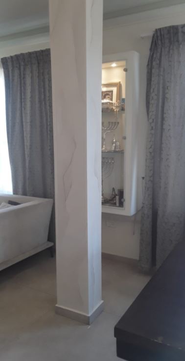 בדיוק עכשיו אני מתכננת ללקוחות צביעת עמוד בעבודת יד (רחיץ ומאד פרקטי) בדוגמא של השיש במטבח, הכי מנימליסטי שיש.