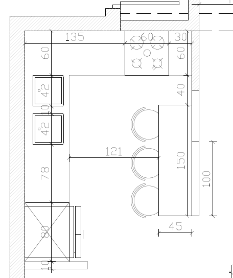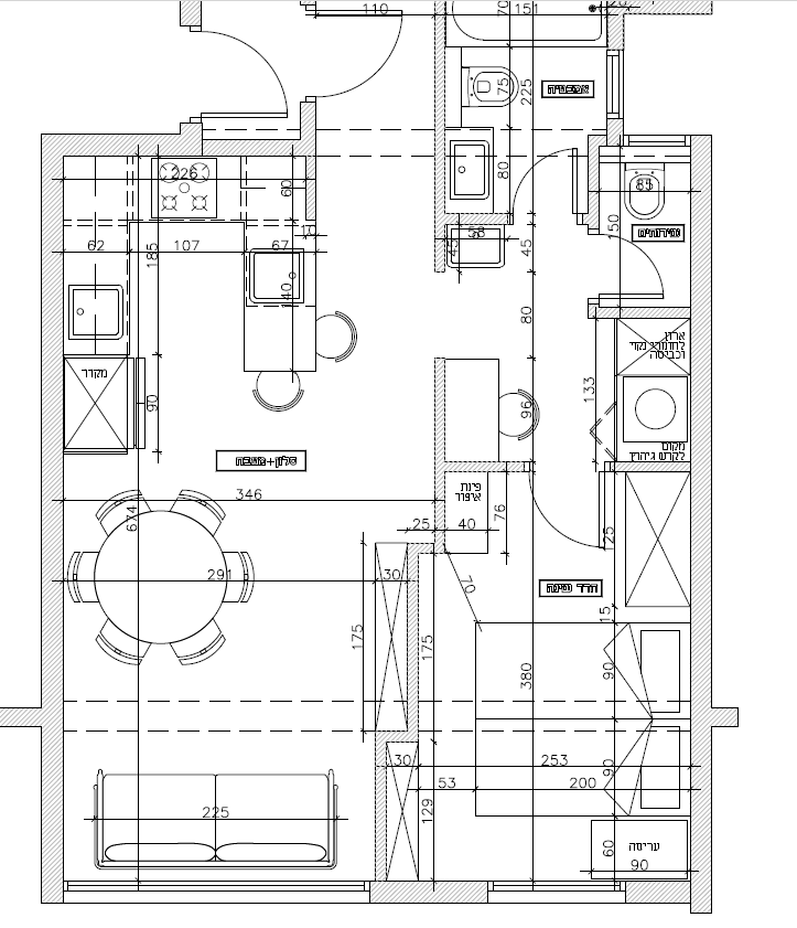 המיקום של הסלון והמטבח ברור, אני מנסה להגיע לתכנון של מטבח אופטימלי.