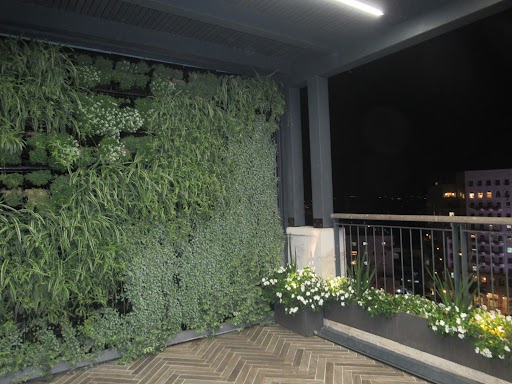 הקיר הירוק אינו במיטבו כעת-שבוע הבא הם אמורים להחליף ללקוחה את הפרחים שנבלו בקיץ(מדובר בפרחי חורף)