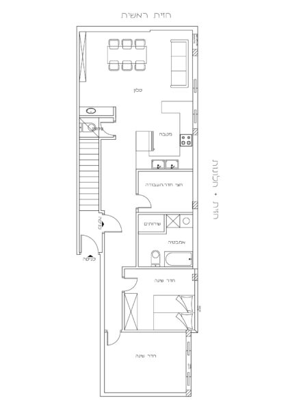 שטח הדירה בקומה התחתונה כולל המדרגות הוא 80 מ"ר בערך. באופן כללי המשקיע רצה להוציא ממנה דירת ארבעה חדרים עם יחידת הורים.