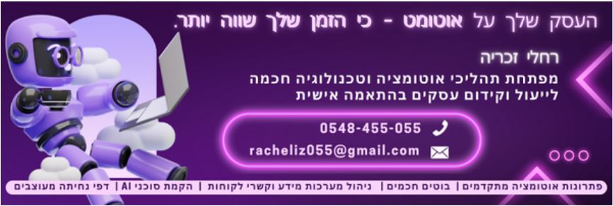 קדם ‹ Forums ‹ אוטומציה לעסקים ‹ אוטומציה עסקית תחרויות ואתגרים בקהילה #1 – יש פרסים! כולן לכאן >>