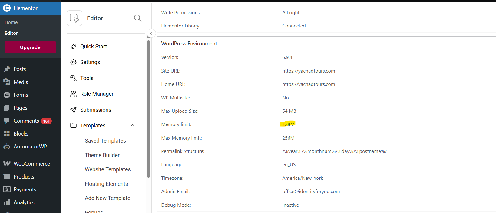 אני עורכת אתר שנבנה בוורדפרס, העריכה איטית ברמה הזויה, ולפעמים השמירה לא עובדת. GPT כותב לי שהסיבה נובעת מכך ששטח האחסון באתר נמוך מדי, 128M(מצורף צילום מסך) האם יתכן שזה הבעיה?