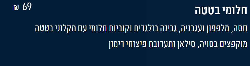 בדרך כלל, בתפריטים האלה מופיעים סלטים פופולריים עם פירוט המרכיבים שלהם