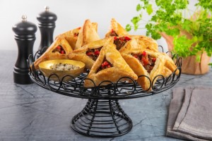 אפשר אוזן המן מלוח במילוי ירקות/ עוף טחון/ כבד וכד' ע רוטב פטריות/ בקר