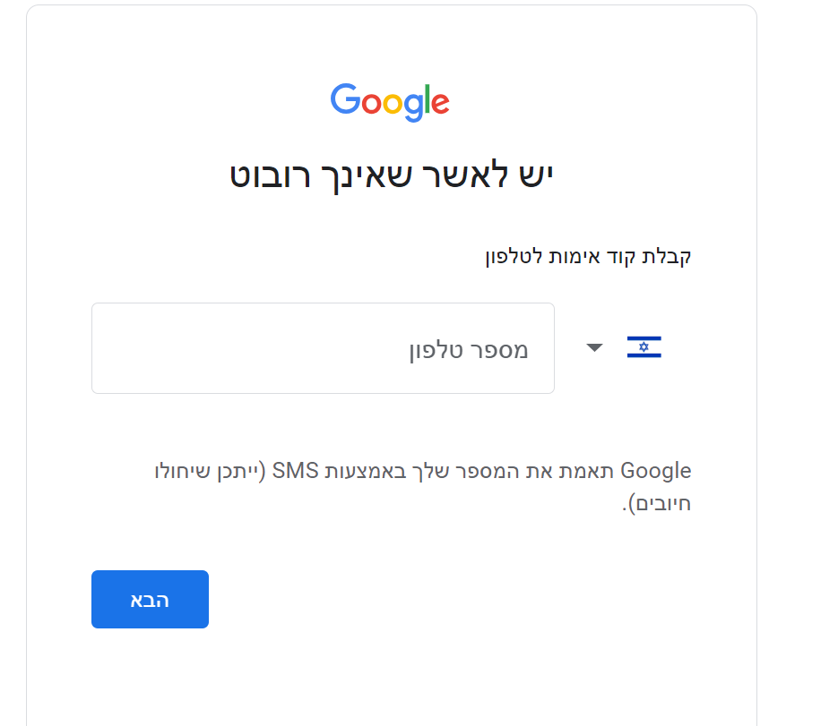 בגדול היום גוגל כמעט תמיד מבקשים טל' לשליחת SMS