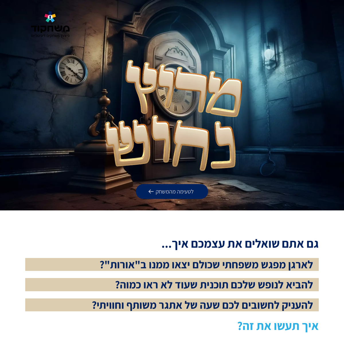 קדם Forums עצמאיות ראשי שיח פתוח חדר בריחה עם תכנים נקיים
