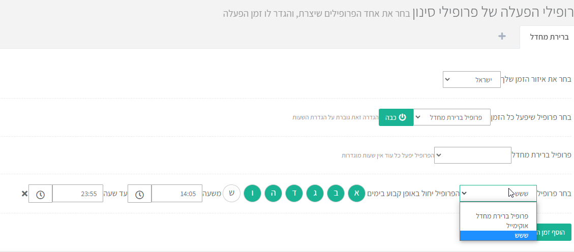 חברה רשומה למטה יותר באותו דף יש לך אפשרות להגדיר שעות לפרופילים מסוימים.