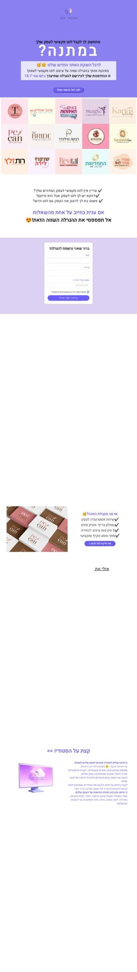 קדם ‹ Forums ‹ עצמאיות ראשי ‹ סקרים הגרלות ומתנות ‹ בא לך לוגו + שיחת אסטרטגיה + ספר מותג לעסק מ-ת-נ-ה?