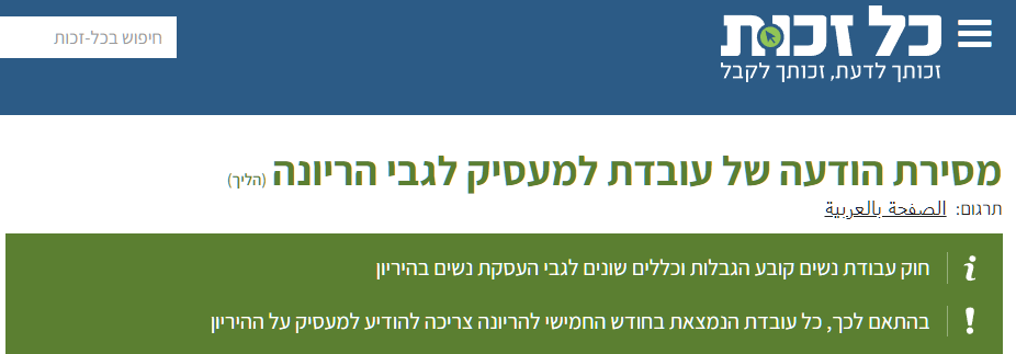 שימי לב שלפעמים זה טובת העובדת – כי ברגע שהמעסיק יודע שהיא בהריון אסור לו לפטר אותה (אם יש לה ותק במקום) ועוד,
