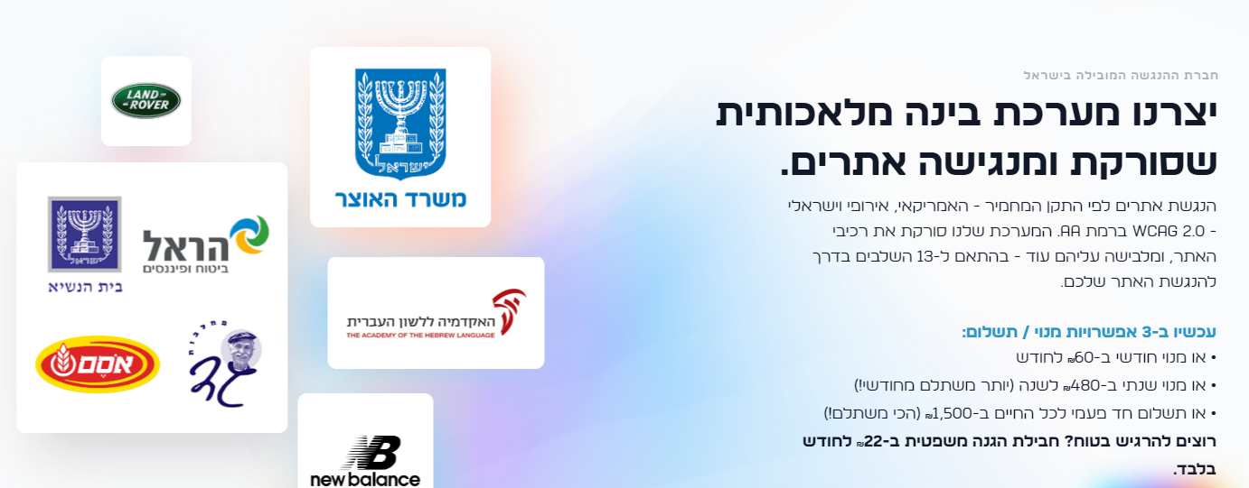 הנגשת אתרים לבעלי מוגבלויות חייבת לפי החוק הישראלי. הנגשה לאתר תשמור עליכם מפני תביעות משפטיות הנוגעות לחוסר התאמת אתר לבעלי מוגבלויות