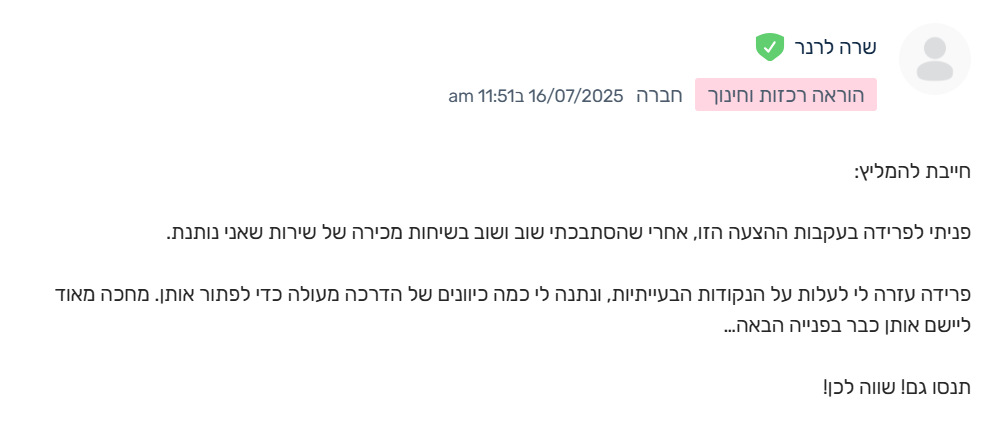 אני עכשיו מחפשת בעלת עסק שרוצה שאני אבנה לה משפך שיווקי חזק למוצר מסוים.