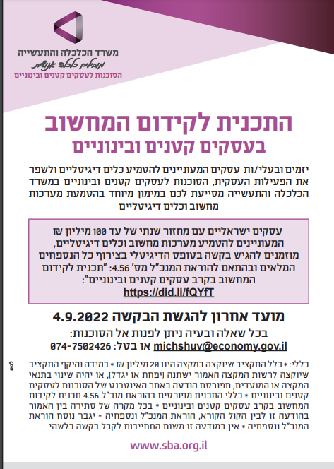 https://www.gov.il/he/departments/policies/economy_dgi_instructions_04_56התפרסם מענק של משרד הכלכלה לקידום המחשוב בעסקים קטנים ובינוניים