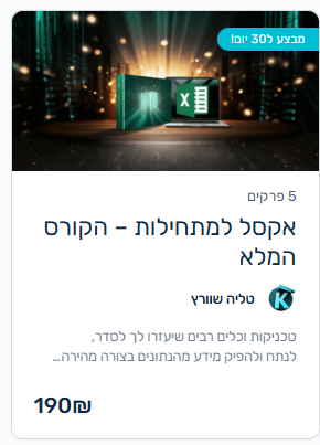 אקסל למתחילות - הקורס המלא - קדם קמפוס