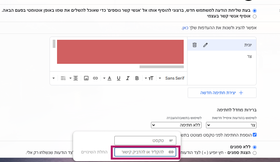 צריכה להחליף קישור בחתימת המייל