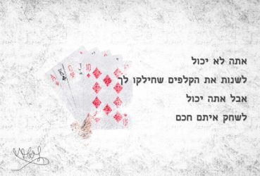 4."אתה לא יכול לשנות את הקלפים שחילקו לך אבל אתה יכול לשחק איתם חכם".- אנחנו לא יכולים לשנות את המציאות ואת הכלים שקיבלנו אבל מחובתינו להפיק מהם את המירב.