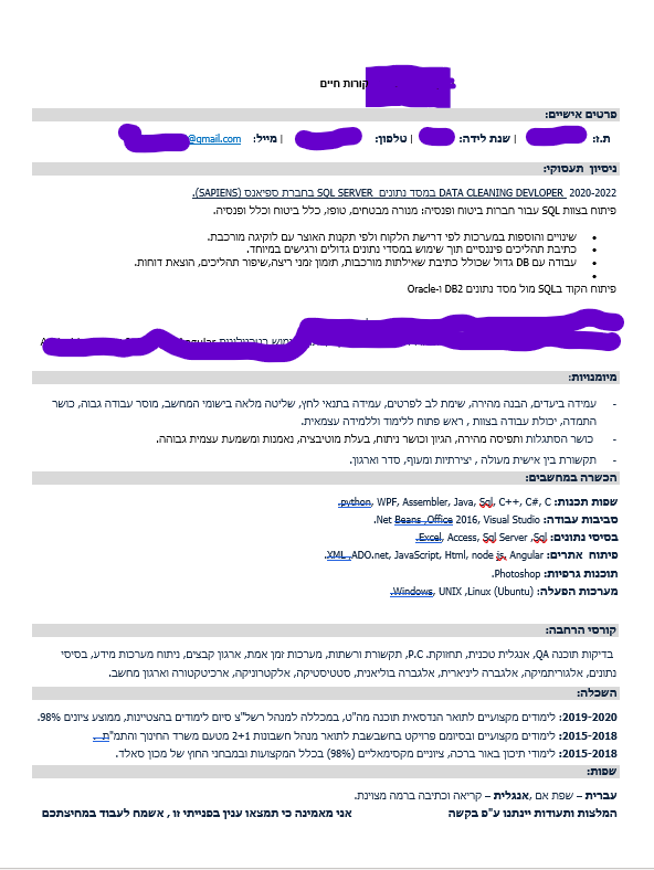 כמו כן, נשמח לכל מידע \ טיפים הקשורים בנושא ניסוח קו"ח (במיוחד מהמגייסות שביננו…)
