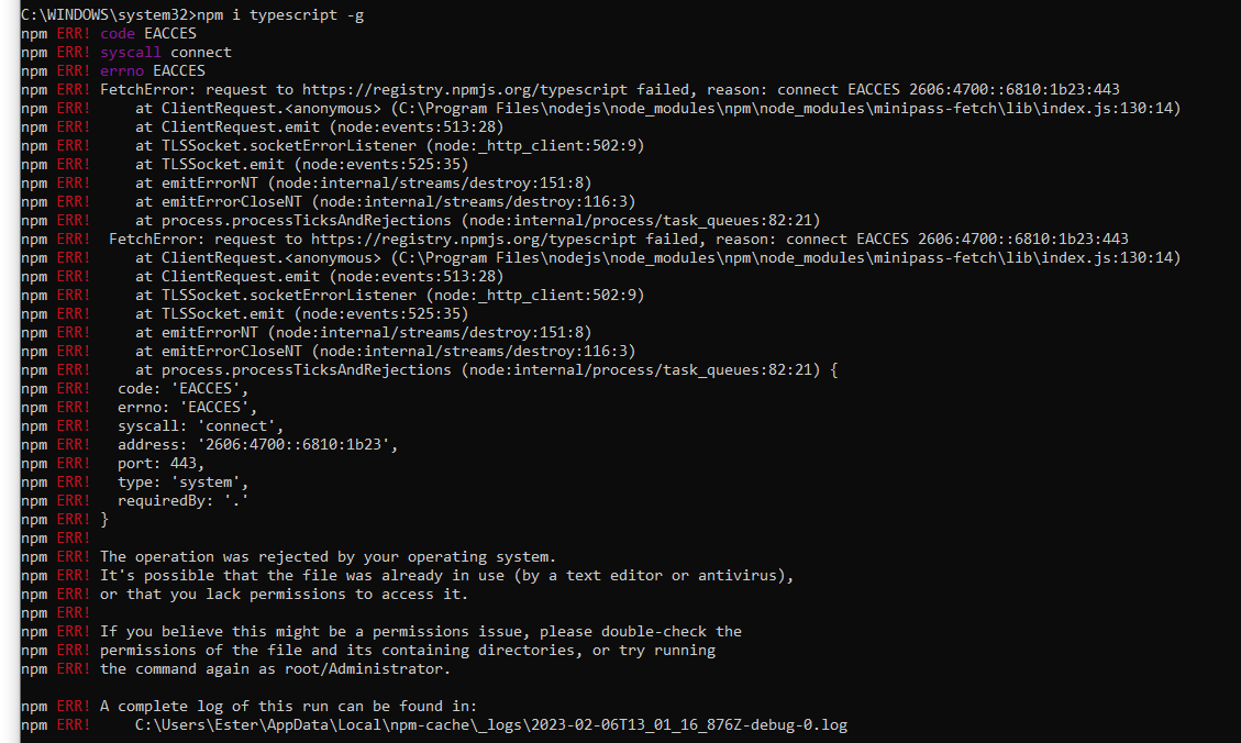 אני צריכה להתקין Typescript ואני לא מצליחה. התקנתי את הNODEJS ואני מנסה לעשות בCMD את השורה הבאה :