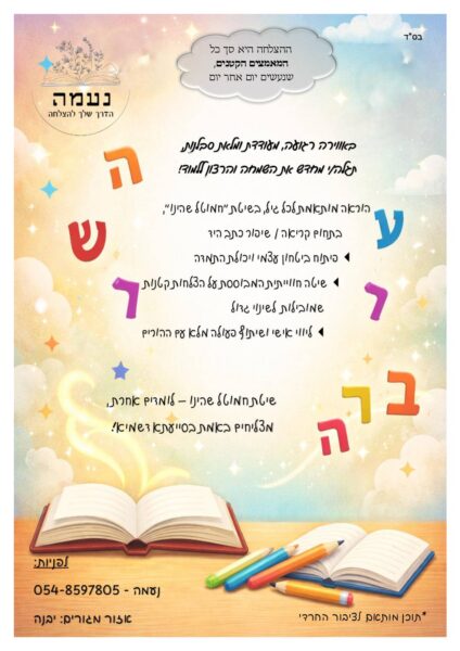 אשמח להפניות נעמה – 054-8597805