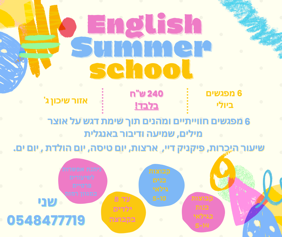 היי אני עושה מפגשי קיץ באנגלית מתחילה ממש בימים הקרובים מצרפת פרטים-