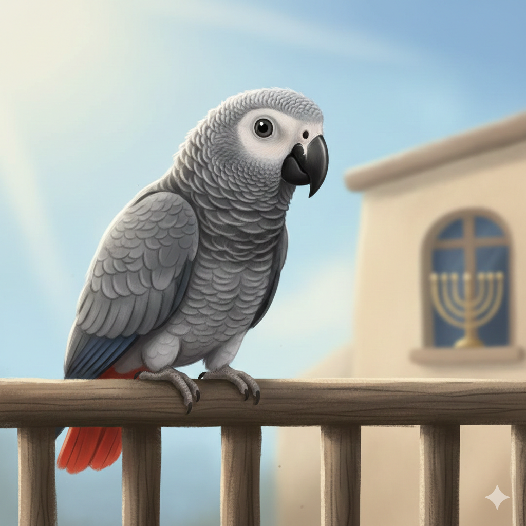 תוכי מדבר נוחת פתאום במרפסת של ילד בודד—ומתחיל למלמל “מודה אני”, “ברוך אתה”, “שמע ישראל”.