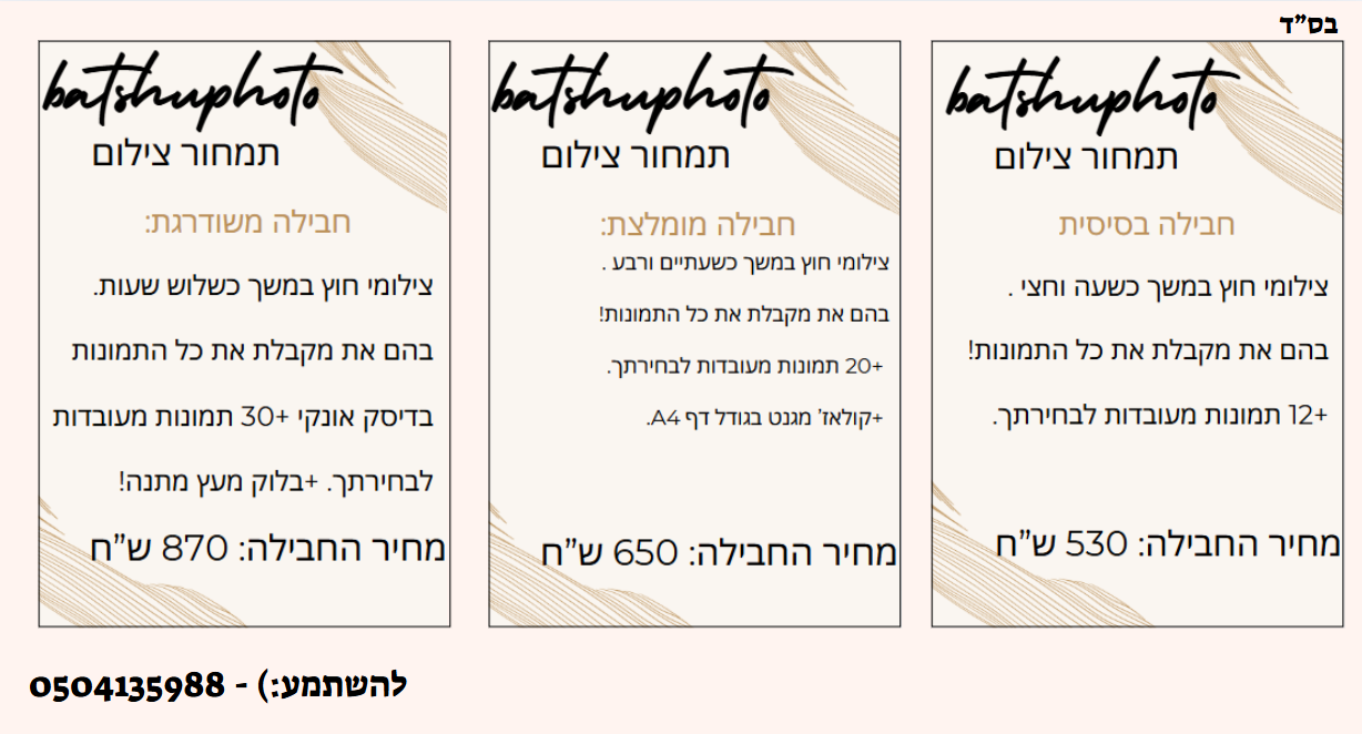 צילומי חוץ ופנים, סמאש קייק, ניו בורן, חלאקה, אירועים, מצגות, מוצרים,... פירוט נוסף