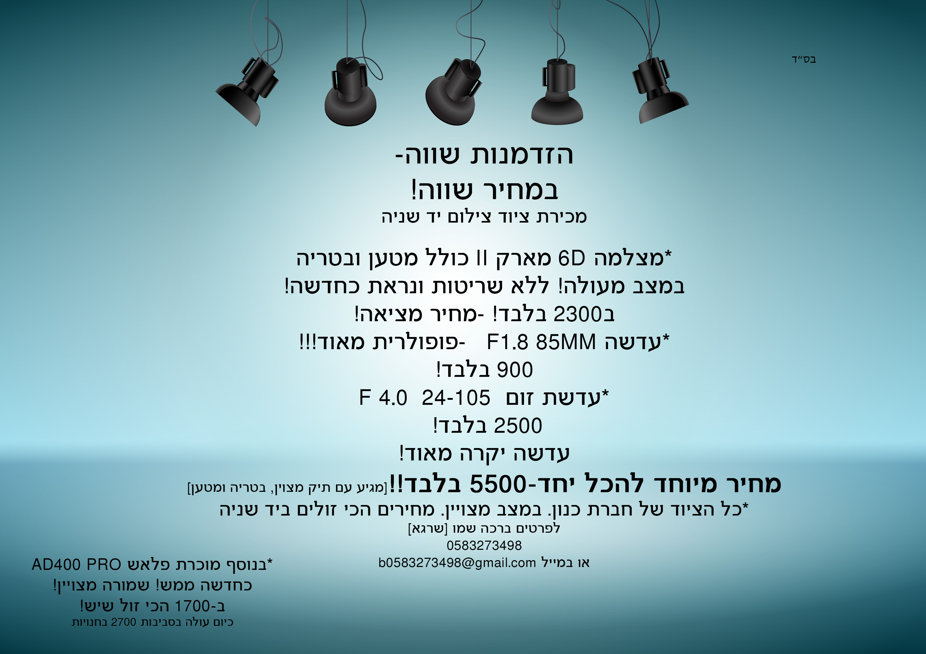 קדם Forums צילום ומולטימדיה מכירת ציוד מקצועי-יש שניה, במחירים הכי זולים!
