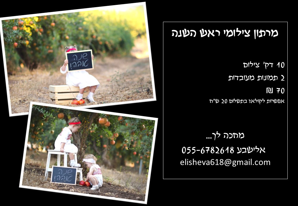 פעילה בקהילה המרתון צילומי שנה טובה יהיה בימי שני ורביעי עד שבועה לפני ראש השנה אני מעיר מודיעין עילית
