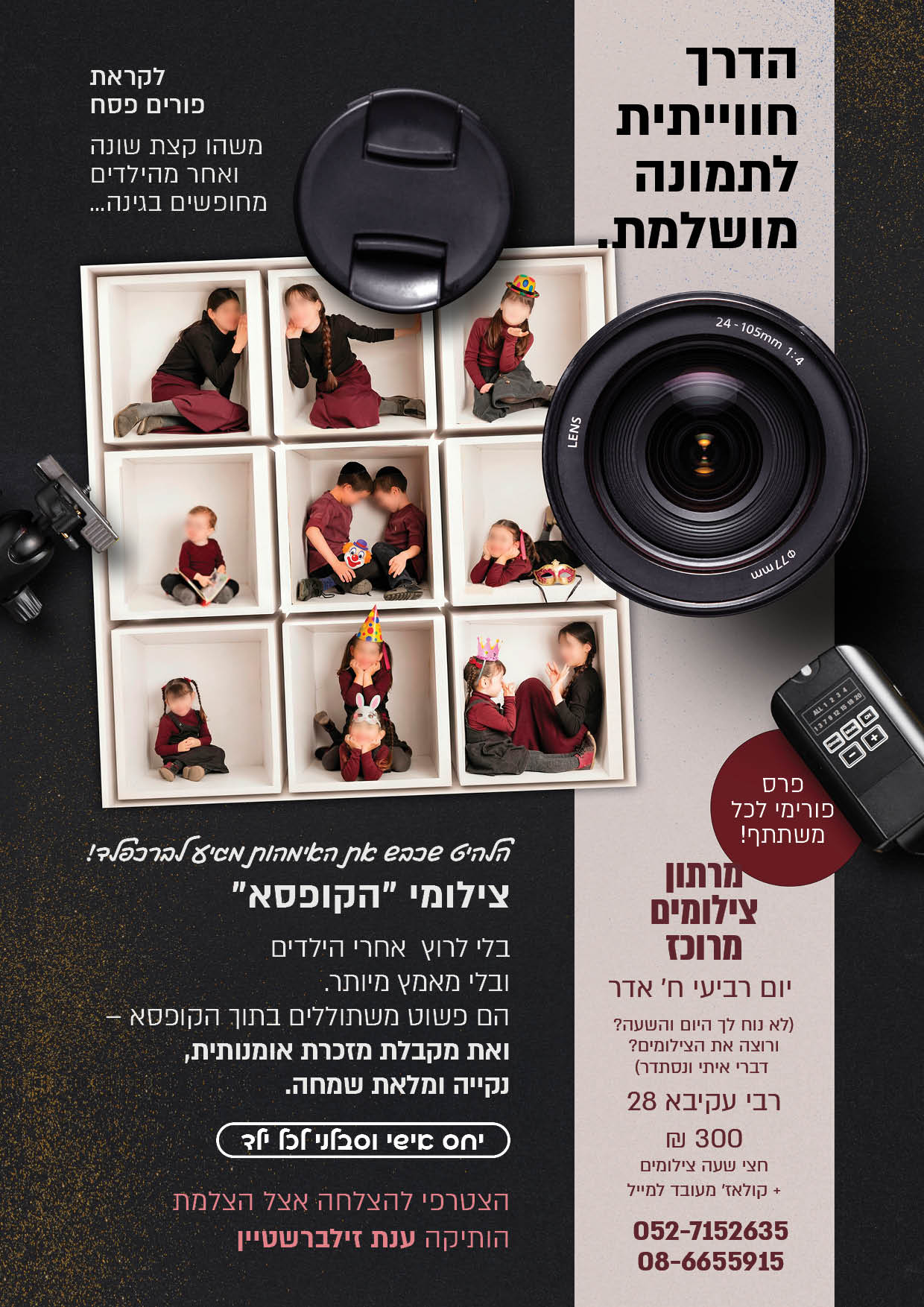 גם דמי פורים על כל החבילות! וגם צילומי פורים במתנה לסוגרות חבילת צילומים כולל אלבום!