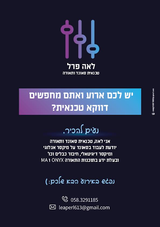 פורסם ע"י הודיה אלבאז אולפן סאונד ונגינה on 29/12/2022 ב5:21 pmאני מחפשת תאורנית טובה ויחסית זולה להופעה